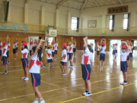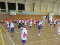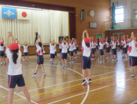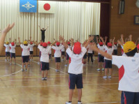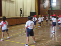 5校時に体育館で4年生が表現の練習をしていました。4年生の表現のタイトルは「開幕宣言」です。先生の動きに合わせて動きを確認した後、音楽に合わせて練習していました。今日の練習で、退場までの動きを確認することができました。速くて激しいダンスとなっています。練習を重ねてかっこよく仕上げていきましょう。