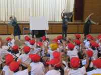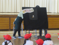 2025年9月25日 14時57分今日の昼休みにママーズホーリーの皆さんに、お話会をしていただきました。今日のお話は、おいしそうなおにぎりが出てくる「おむすびころりん」のパネルシアターでした。最初にみんなでおにぎりの歌を歌って盛り上がりました。ママーズホーリーの皆さん、いつもありがとうございます。