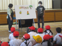 今日の昼休みにママーズホーリーの皆さんに、お話会をしていただきました。今日のお話は、おいしそうなおにぎりが出てくる「おむすびころりん」のパネルシアターでした。最初にみんなでおにぎりの歌を歌って盛り上がりました。ママーズホーリーの皆さん、いつもありがとうございます。