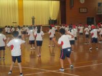 運動会に向けて、ダンスやかけっこ、リレーなど、子どもたちは練習を頑張っています。今日は、体育館でダンスの動きを確認しました。腕を伸ばしたりリズムに乗って膝を曲げたりと、ダンスがうまくなるこつをみんなで確認し合いました。