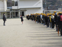 1年生は、今日から班長さんの迎えがなくなり、自分で集合場所に移動しました。昼には、雪が降って降っていました。天気予報では、今後さらに雪が降ると予測されています。明日の朝は道が凍っているかもしれません。子どもたちは、ゆっくり気を付けて歩くことを約束して下校しました。